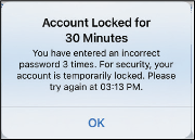 For security purposes if you enter an incorrect password three consecutive times in the mobile app, your account will be locked for 30 minutes. During this time, you will not have access to your Eversense NOW account.