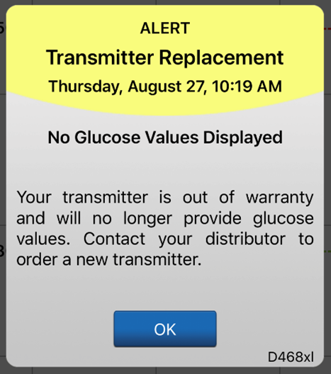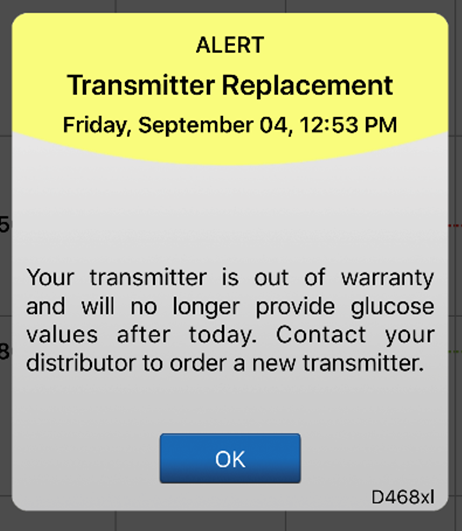 The system will send out a notification on day 330, and alerts on days 366, 395, and 396 reminding the user to order a new smart transmitter. After day 395, the smart transmitter will no longer be able to provide CGM data to you.