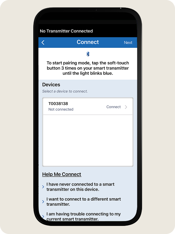 NOTE: Your mobile device must be connected to the internet in order to pair with the smart transmitter.